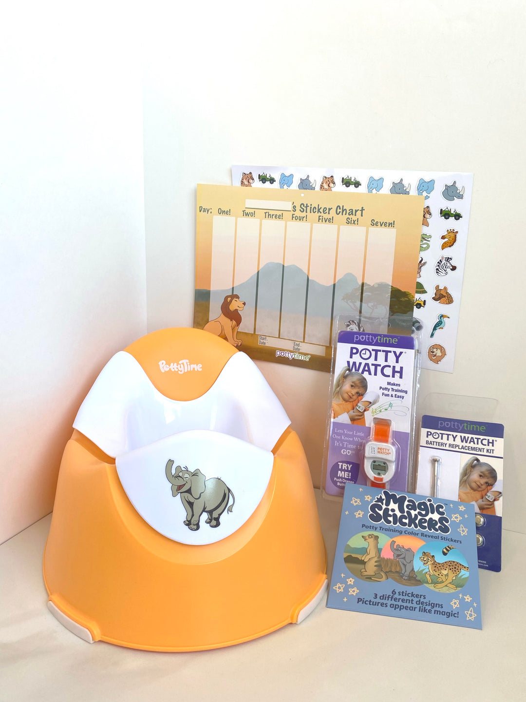 With the Potty Watch strapped to their wrist, toddlers will be reminded by music 🎶 and blinking lights ✨✨ to head to the bathroom. Parents choose the time between bathroom visits, extending it as children get better at figuring out when to go potty.